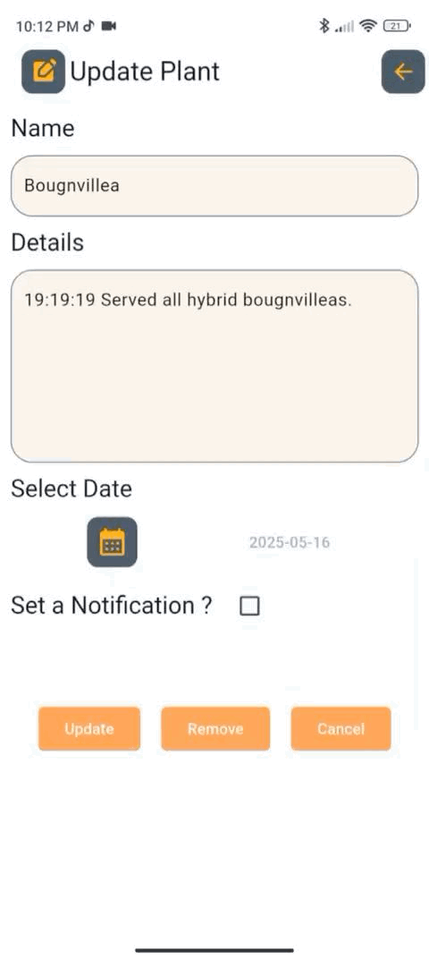 Adding a new plant is a breeze with smooth animations and date pickers. It feels as good as potting a new plant itself!