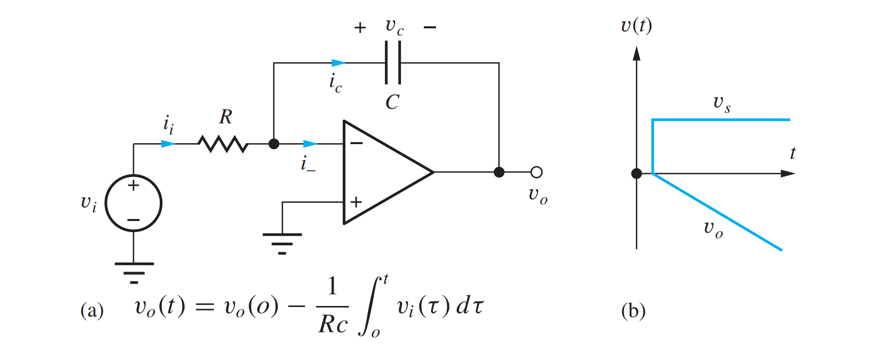 \[ v_o(t) = v_o(0) - \frac{1}{RC} \int_0^t v_i(\tau) \, d\tau \]