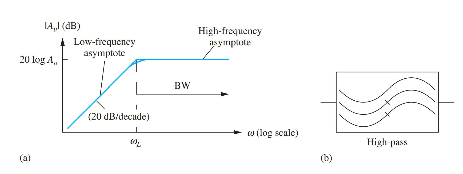 - The high-pass amplifier, shown in Figure 1 (b), amplifies all signals above the lower cutoff frequency \(f_L\).