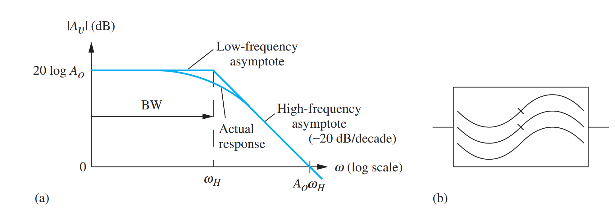 - The low-pass amplifier, shown in Figure 1 (a), passes all signals below some upper cutoff frequency \(f_H\).