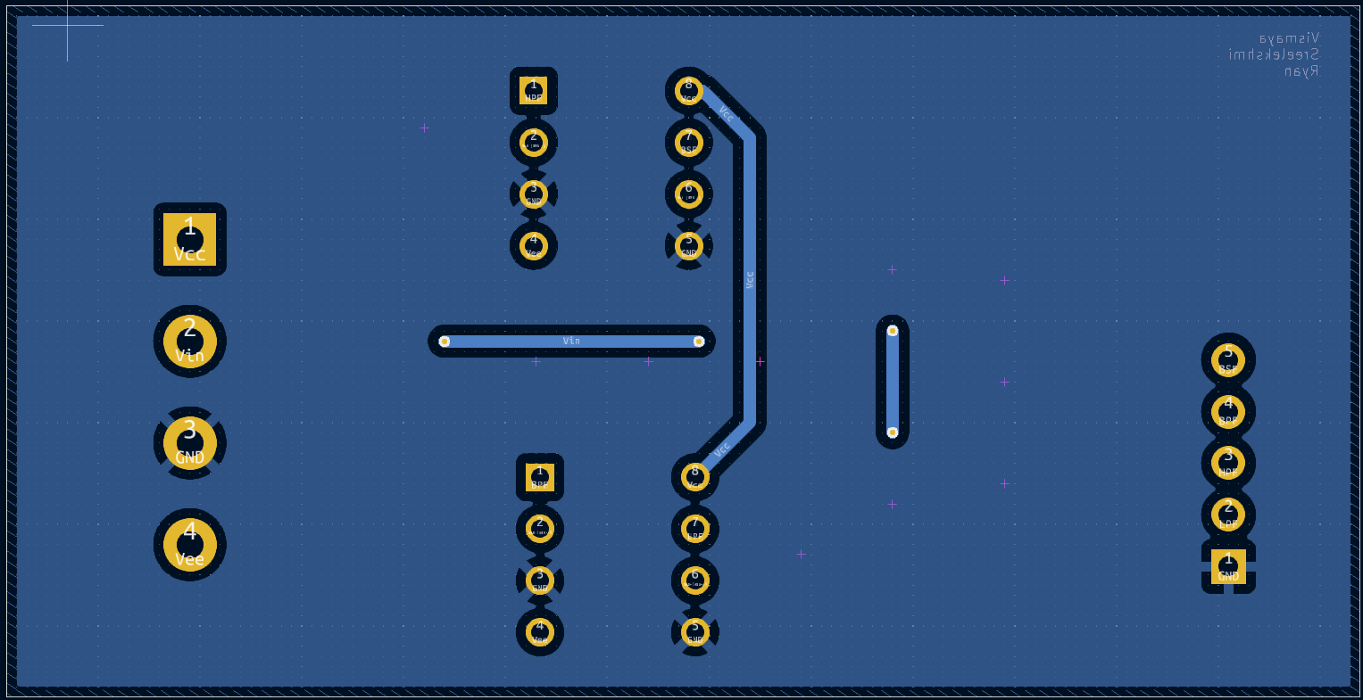 From the above Figure 16 , we get can generate a PCB Layout. Care is taken to avoid signal interference. The track width is chosen to be 0.025 inches or 0.635 mm. The number of via’s and 90 degree tracks are reduced and avoided.