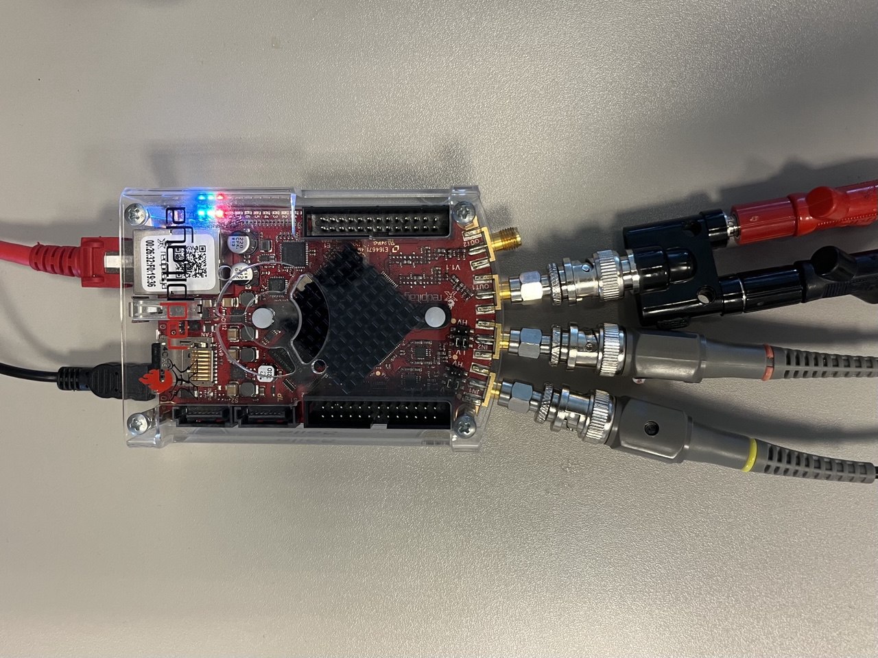The red-pitaya module as in Figure 18 acts as an oscilloscope, where the data could be taken from the server hosted by the module.
