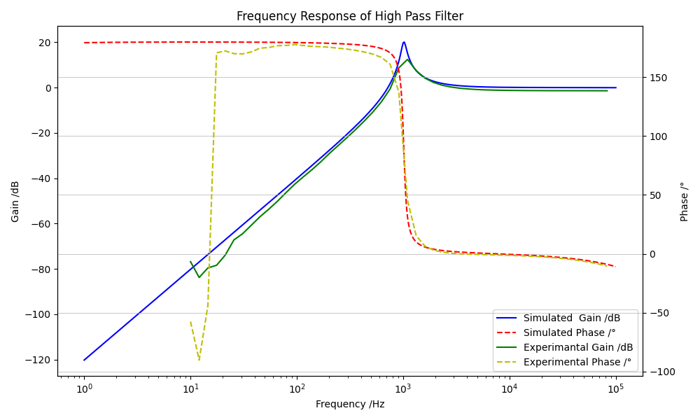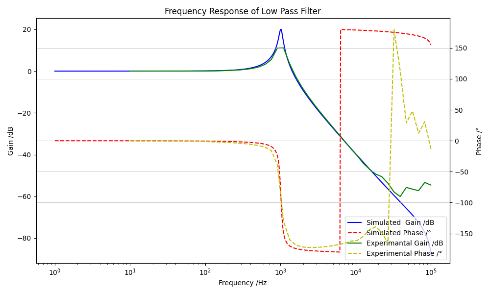 5.3.1 Comparison of models using KiCad-ngspice and Red Pitaya-Analog System Lab Kit PRO